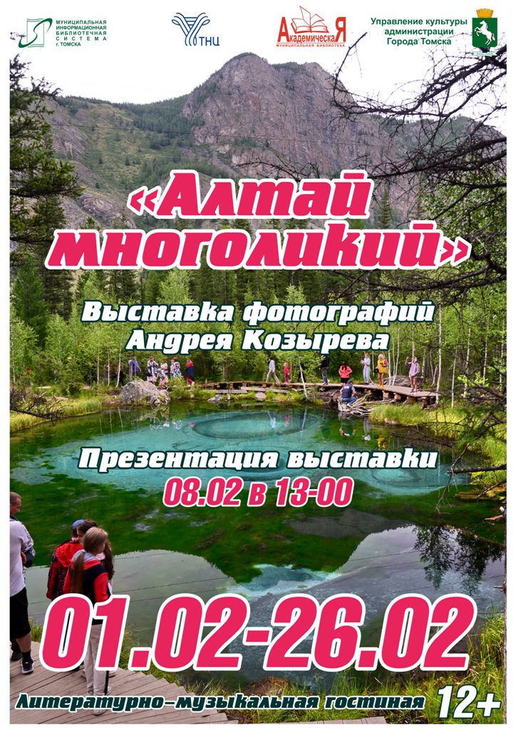8 февраля в 13.00 в муниципальной библиотеке «Академическая» (ул. Королёва, 4) пройдёт презентация фотовыставки А. Козырева «Алтай многоликий». Автор представит гостям свои работы, созданные во время путешествий, а также расскажет историю каждого снимка и ответит на вопросы.Выставка и презентация организованы совместно с Томским научным центром Сибирского отделения академии наук (ТНЦ СО РАН) в рамках цикла мероприятий, посвящённых Дню российской науки. Открытие выставки состоится в литературно-музыкальной гостиной библиотеки. Вход свободный! 28.01.2026 г.