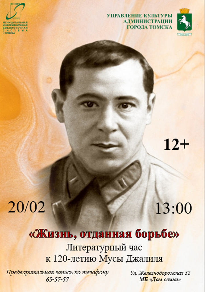 Участники встречи совершат историко-биографическое путешествие по судьбе выдающегося татарского поэта и Героя Советского Союза Мусы Мустафовича Джалиля. Выразительное чтение стихотворений, созданных в разные периоды, и яркая презентация помогут создать живой образ юбиляра. 12.02.2026 г.